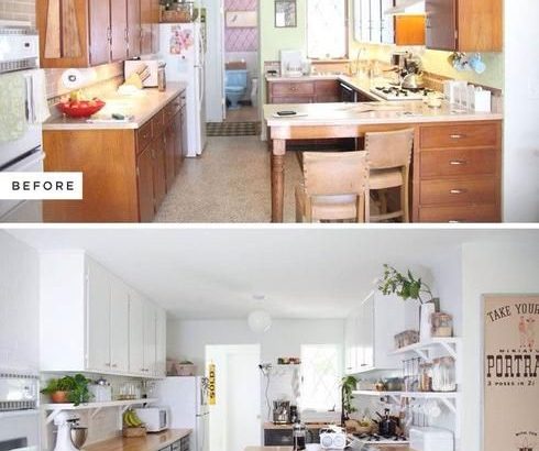 Armoire cuisine Avant-Après Opter pour la cuisine deux tons Cet avant/après démontre bien l’impact que peut avoir la peinture sur nos armoires de cuisine! Cette transformation apporte de la lumière et de la fraîcheur à la pièce. De plus, les caissons du haut en blanc et ceux du bas en gris représentent une idée très tendance.
