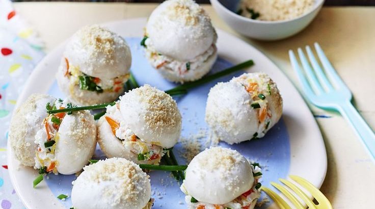 Champignons de Paris comme des macarons au fromage frais Philadelphia et à la chair de crabe !