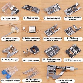 Lot de 15 pieds “standards” pour machine à coudre description et tuto vidéo utilisation