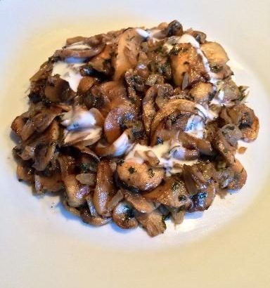 paprika, poivre, échalote, crême fraîche, champignon de Paris, vinaigre balsamique, noisette, persil, sel
