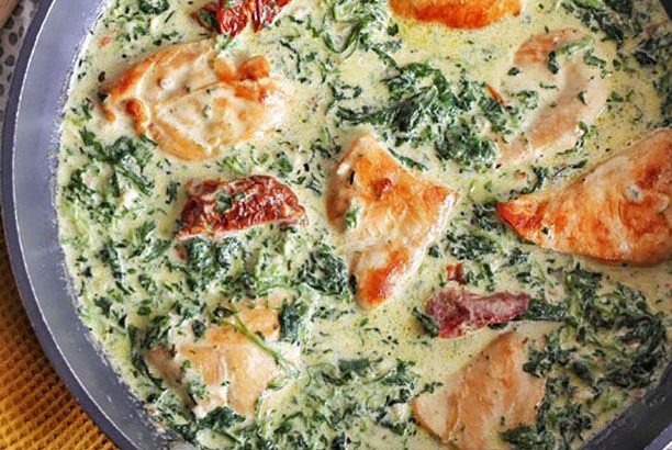 Poulet crémeux au parmesan, épinards et tomates séchées