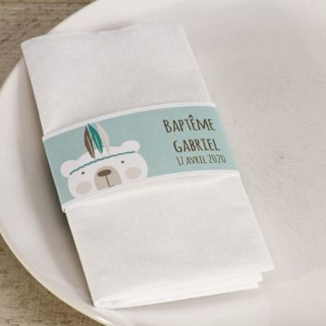 Rond de serviette ourson indien pour Baptême garçon