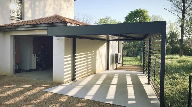 Ce #carport alu à toit plat en forme de trapèze à trouver sa place idéale à Lyon.