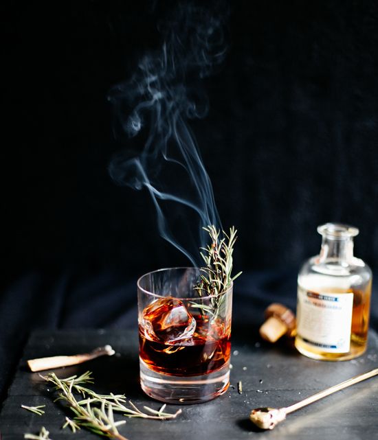 Sleepy Hollow cocktail inspired by nightly rides through the dark forest, where the Headless Horseman gallops back and forth to the scene of battle in a quest for his head. A smoky mezcal is blended with allspice dram to bring together fall's autumnal flavors. To finish the drink, try lighting up a sprig of rosemary and awaken the spirits of the night.